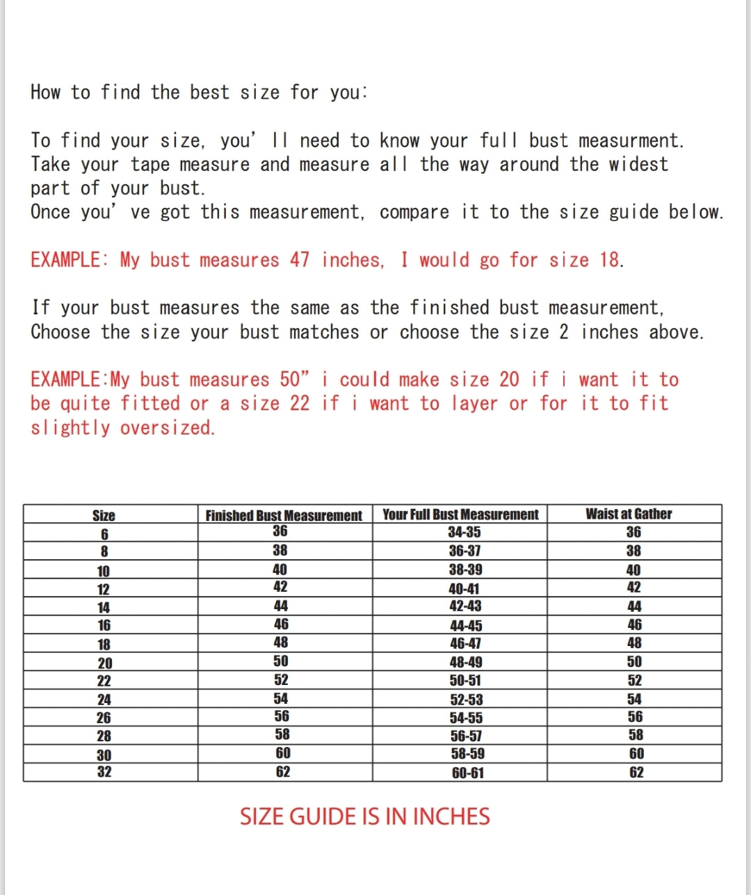 UK Size 6 (34"-36" bust) to UK Size 32 (60"-62" bust)